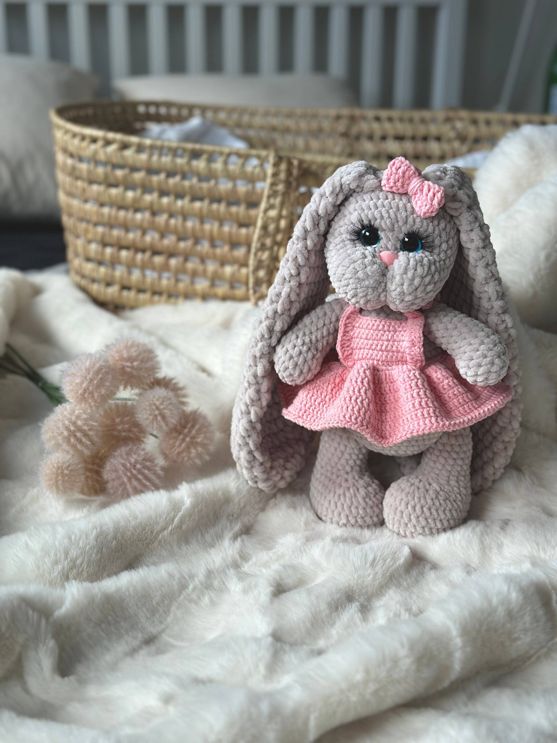This adorable crochet bunny is lovingly handcrafted with soft, high-quality yarn, making it the perfect cuddle companion for babies, toddlers, or anyone who loves cute, cozy creatures. With its floppy ears, gentle smile, and sweet design, it brings warmth and charm to any nursery or playroom.
